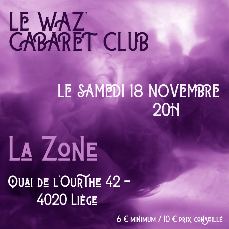 Réservations via Info@lazone.be – Paiement sur place CASH ONLY